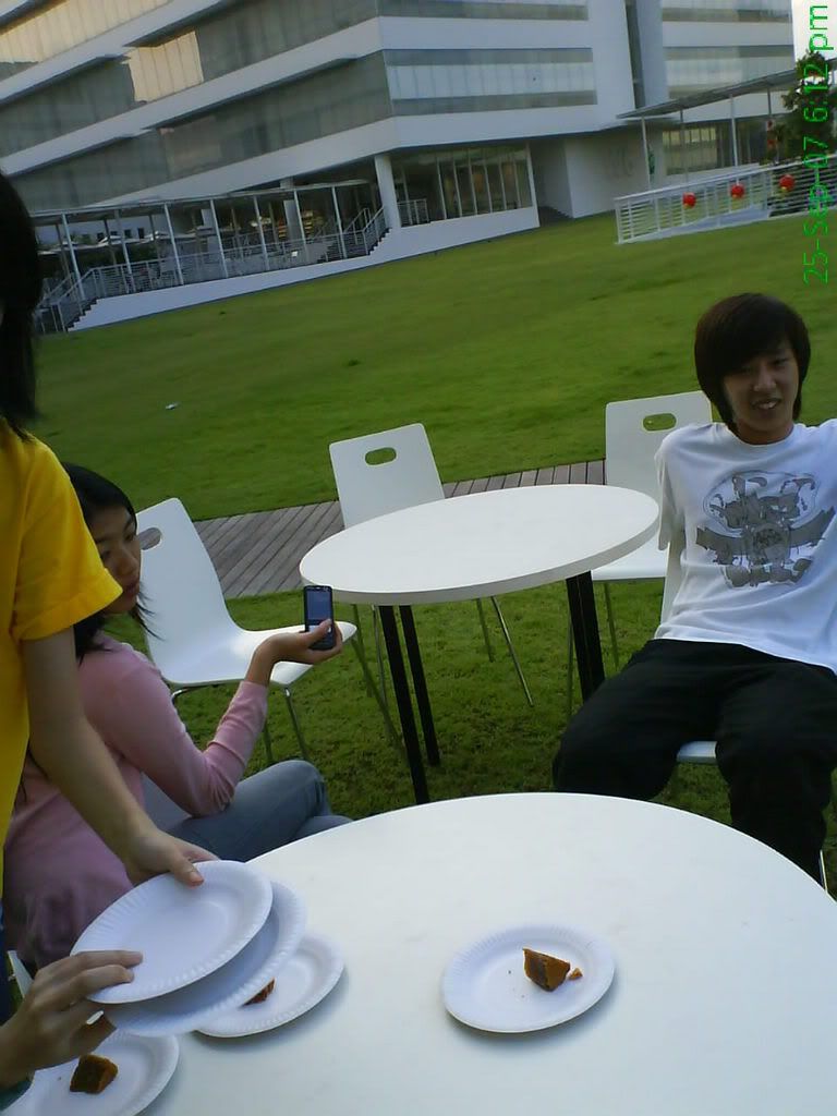 while we were waiting for tt thing to start or sth la... got to eat moon cake... YES, those small pieces are mooncakes... LOL...
